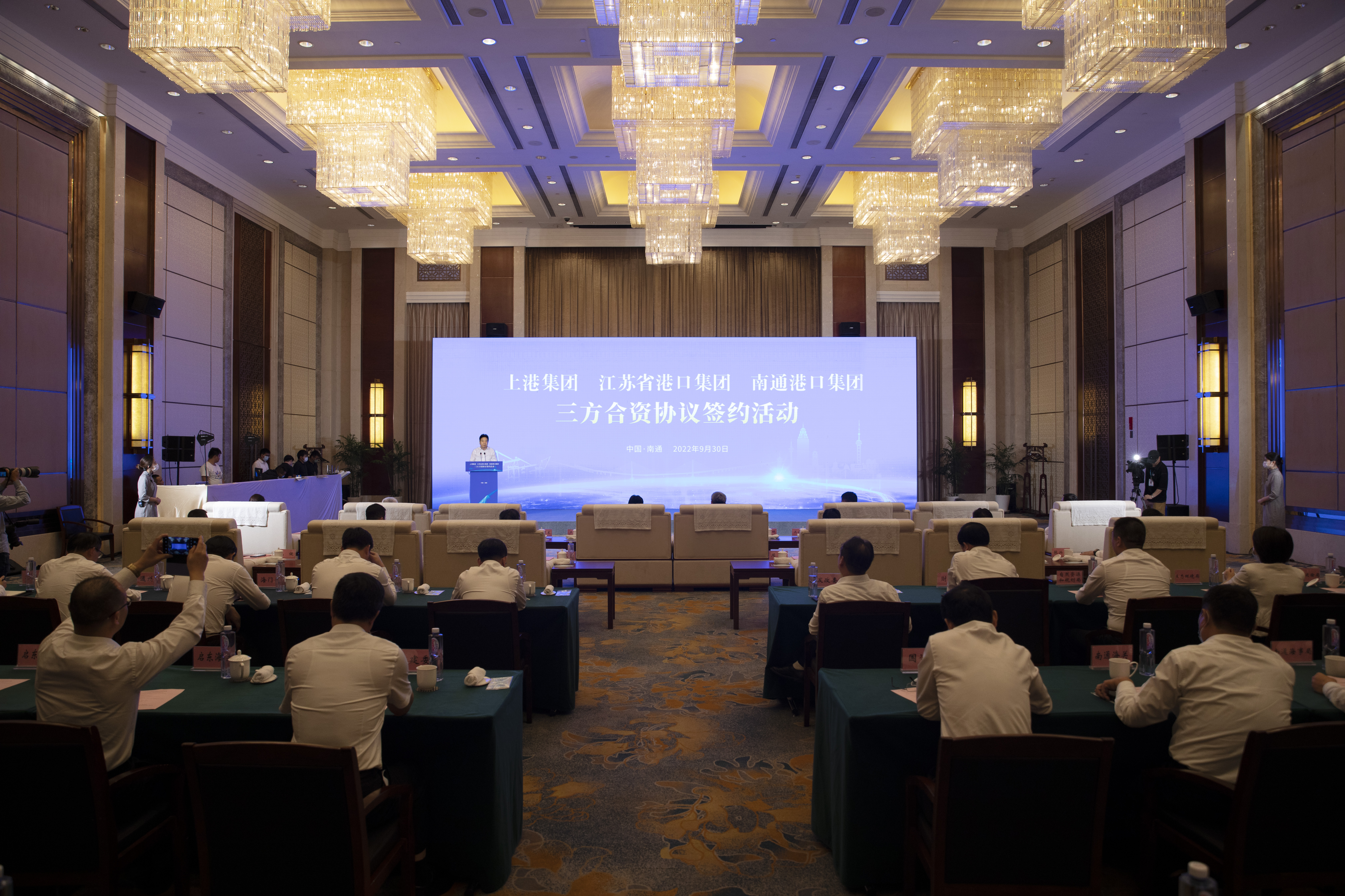 四時(shí)俱可喜,最佳新秋節(jié)。在金秋送爽、喜迎豐收的美好時(shí)節(jié),9月30日上午,上海國(guó)際港務(wù)集團(tuán)、江蘇省港口集團(tuán)、南通港口集團(tuán)在濱江會(huì)議中心簽署協(xié)議,三方將組建合資公司,攜手運(yùn)營(yíng)呂四起步港區(qū)集裝箱碼頭。上港集團(tuán)黨委副書記、總裁嚴(yán)俊,省港口集團(tuán)黨委副書記、總經(jīng)理關(guān)永健,市委副書記、市長(zhǎng)吳新明致辭并見簽。市委常委、常務(wù)副市長(zhǎng)陸衛(wèi)東主持簽約活動(dòng)。