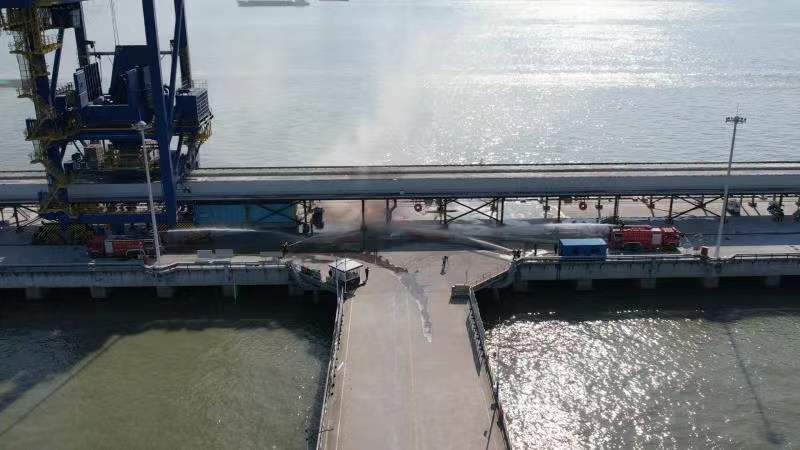 演習主要模擬碼頭在發(fā)生外輪人員偷渡、縱火等情況時,按照市交通運輸局指令,提升港口設(shè)施保安等級,落實各項保安措施,配合公安機關(guān)、口岸單位、衛(wèi)生健康單位處置偷渡、火災(zāi)、涉外疫情防控等突發(fā)事件,檢驗和提高港口設(shè)施保安組織及保安人員的應(yīng)急反應(yīng)能力。同時對碼頭國際航行船舶涉外疫情應(yīng)急措施進行測試,檢驗港口疫情應(yīng)急處置實戰(zhàn)水平,落實“四早”要求,力求最短時間阻斷疫情傳播鏈條,確保不發(fā)生疫情擴散。