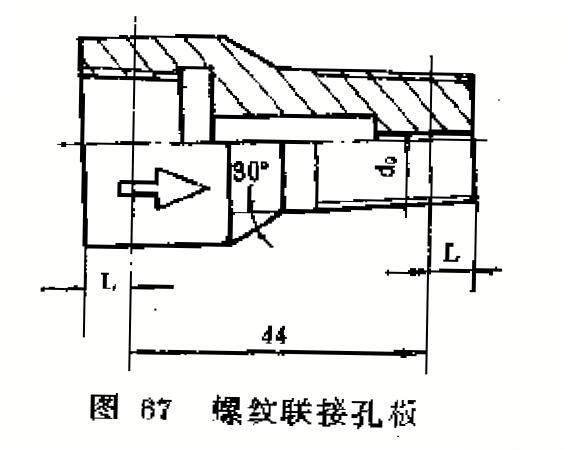 螺紋連接孔板見(圖67)。它相當于一個噴嘴,與前者的不同在于孔板較長。