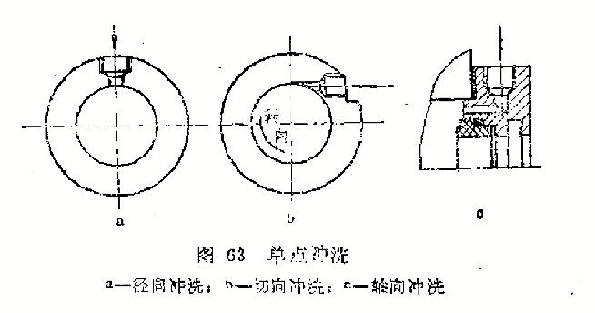 切向沖洗(圖63b):沖洗液沿切線方向沖洗摩擦副,是單點沖洗中較好的方式。